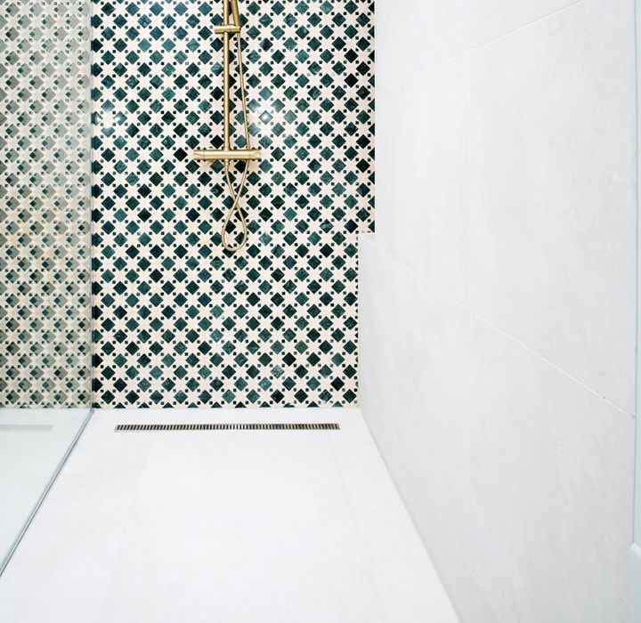 Elegant bathroom with walk-in shower and freestanding bathtub