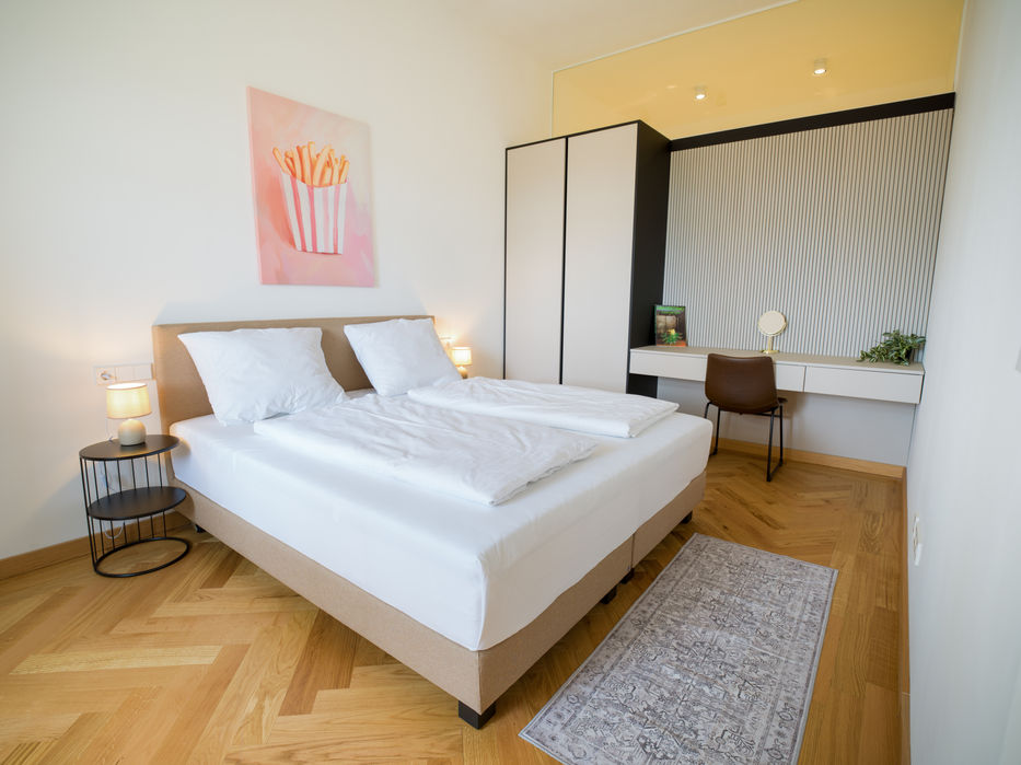 Ein stilvolles Refugium: Die Standard Suite N°314 (55 m²) verbindet großzügiges Raumgefühl mit hochwertigem Design und warmen Naturmaterialien. Edles Interieur, feine Details und eine durchdachte Ausstattung schaffen eine ruhige, elegante Atmosphäre – ideal für Gäste, die Komfort, Stil und entspanntes Ankommen schätzen.
