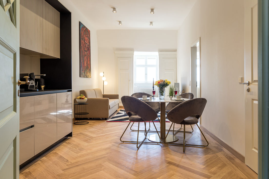 Ein stilvolles Refugium: Die Standard Suite N°325 (50 m²) verbindet großzügiges Raumgefühl mit hochwertigem Design und warmen Naturmaterialien. Edles Interieur, feine Details und eine durchdachte Ausstattung schaffen eine ruhige, elegante Atmosphäre – ideal für Gäste, die Komfort, Stil und entspanntes Ankommen schätzen.